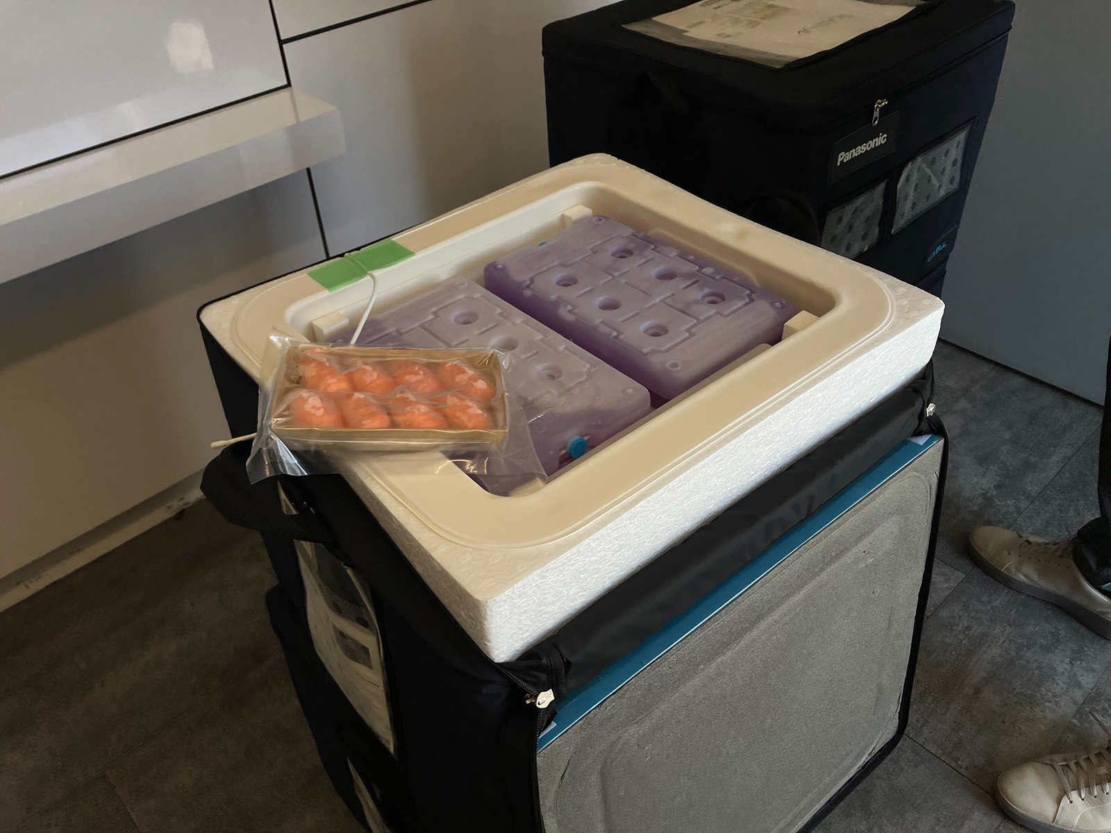 食品輸送については「単価が合わない...」との思いから、これまで積極的な営業活動を行っていなかったのですが、デイブレイク社とのやり取りを通じて、冷凍寿司(サーモン)やカリフォルニアロールをアメリカで販売し、国際輸送の際に課題があることも知りました。国際輸送では、フライト中の温度維持よりも、貨物をトラックから飛行機や倉庫へ積み替える際に外気にさらされる影響をいかに抑えるかが重要です。