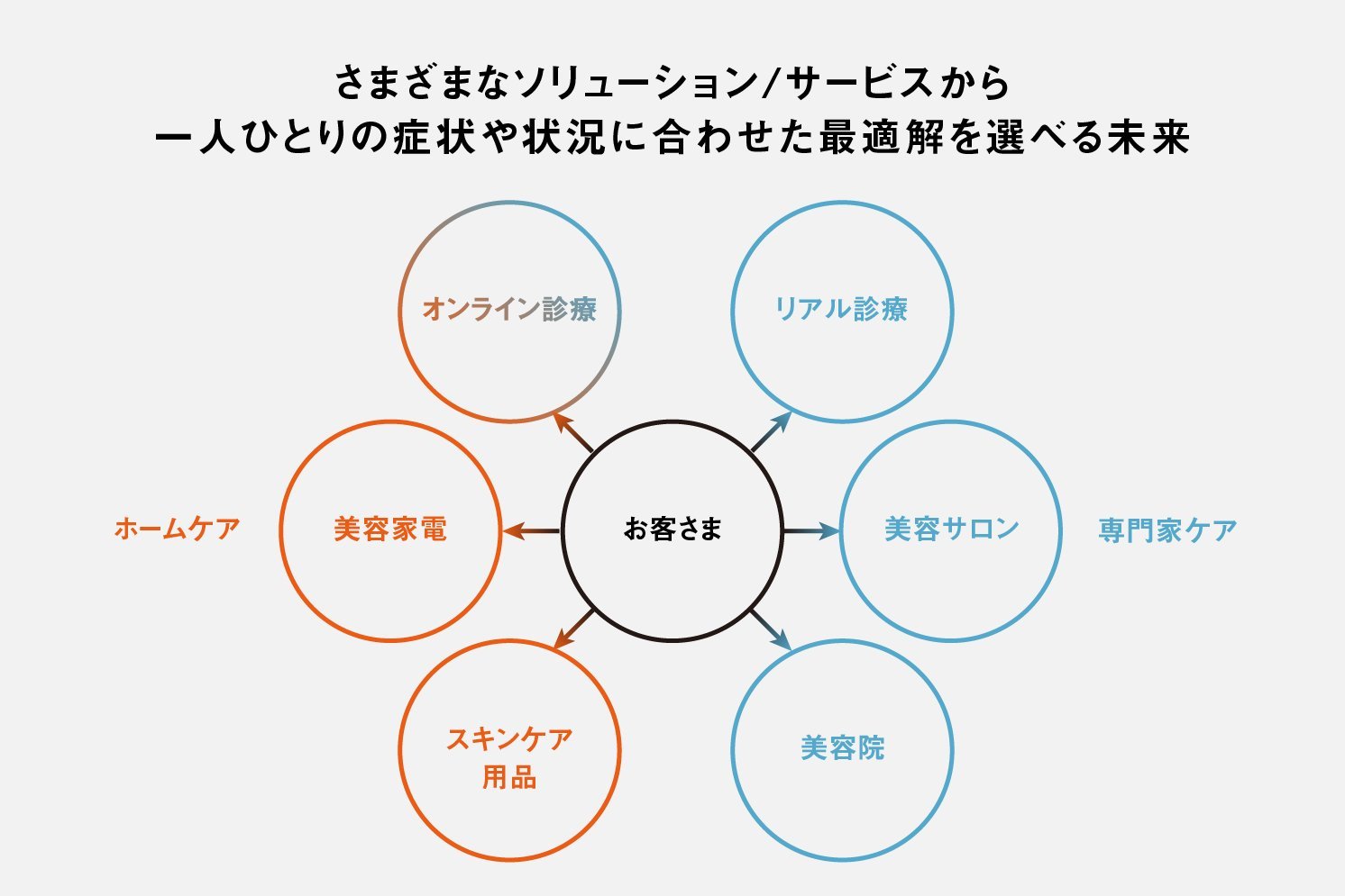 竹村いずれにせよ、単体の機器やサービスだけですべての悩みに対応することは不可能です。たとえば、美容家電や私たち医療従事者、オンライン診療やスキンケア用品など、さまざまな要素を組み合わせたトータルのソリューションを提供するようなプラットフォームがあって、そのなかからユーザーが自分に合うものを選べる。そんなことができるようになるといいですよね。