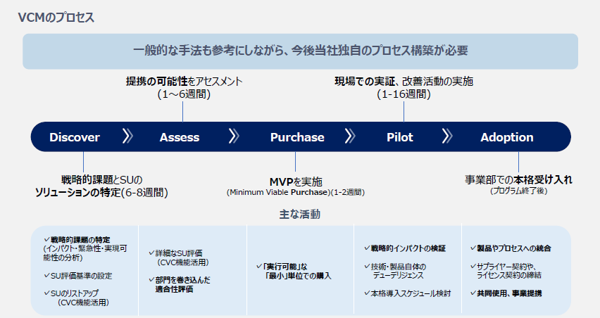 これらの課題を同時に解決し、スタートアップの技術を迅速に事業に結びつける方法として、ベンチャークライアントモデル(VCM)は非常に有効な選択肢となります。
